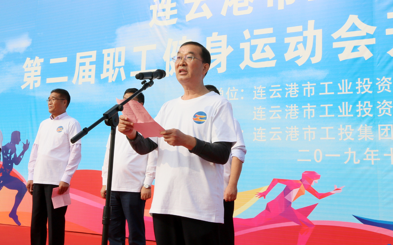 金秋十月,丹桂飄香。1024日上午,美麗的徐圩新區云湖廣場彩旗招展,歌聲飛揚,為慶祝中華人民共和國成立70周年,豐富職工業余文化生活,由集團公司、集團公司工會主辦,徐圩投資公司承辦的集團第二屆職工健身運動會開幕式暨健步走活動在這里隆重舉行。集團公司黨委書記、董事長楊龍宣布第二屆職工健身運動會開幕,并為健步走活動發令。總經理胡建明致開幕詞。工會主席劉承志主持開幕式。