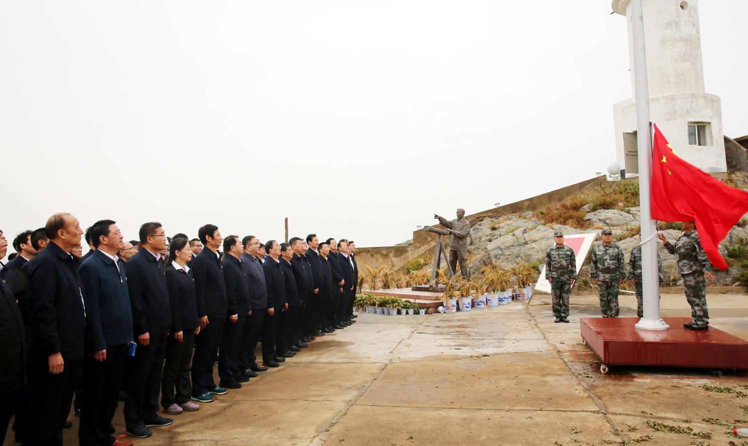 為進一步踐行“不忘初心、牢記使命”主題教育,追尋“人民楷模”王繼才、王仕花夫婦的守島精神,10月10日,集團公司黨委書記、董事長楊龍,總經理胡建明等黨委領導班子成員與機關部分黨員、各單位黨內先進代表等共100人,冒雨赴江蘇省干部黨性教育基地——開山島,開展“學習人民楷模王繼才、踐行初心使命勇?lián)敗秉h性教育活動。 在面積只有兩個足球場大的開山島上,全體黨員參觀了王繼才同志生前工作生活過的場所,看望慰問王仕花和守島民兵,舉行莊嚴的升國旗和重溫入黨誓詞儀式。在王繼才先進事跡展覽室,一件件實物和一幅幅圖片,從不同角度、不同側面生動的再現了王繼才“島就是家、島就是國”,扎根海島、獻身海防的先進事跡和奉獻精神。活動期間,大家還觀看了紀錄片《守島32年》,認真聆聽了王仕花講授的關于守島衛(wèi)國32年,用無怨無悔的堅守和付出,在平凡的崗位上書寫了不平凡人生華章的微黨課。