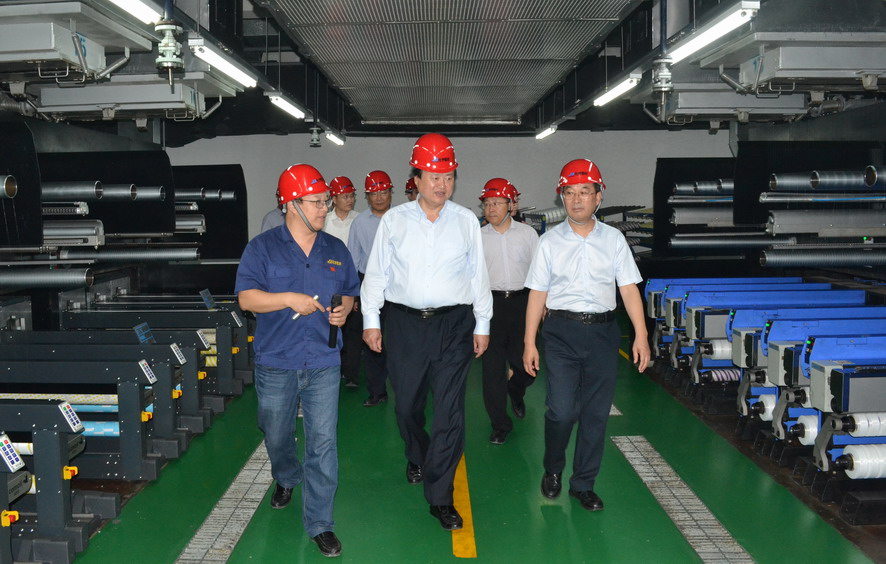6月28日,我市召開重點工業項目觀摩推進會,副市長徐家保一行深入氨綸公司開展調研活動。工投集團總經理胡建明參加活動。