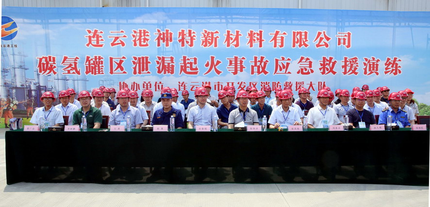 正值全國“安全生產月”之際, 6月19日上午,集團公司在神特新材料公司針對重要危險源乙類碳氫罐區舉行安全應急綜合演練。市國資委副主任陸體洋,集團公司副總經理張其海、工會主席劉承志,市開發區應急管理局局長許春明觀摩應急救援演練。