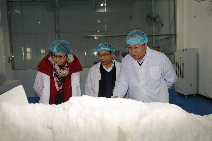 曹鑫副處長一行參觀了金橋制鹽公司雪花鹽車間、加工鹽車間和包裝鹽車間,現場了解海食鹽生產工藝流程、產品銷售情況,并聽取了公司目前生產過程、質量管理以及市場銷售等情況匯報。曹鑫副處長對金橋制鹽公司質量管理工作給予了肯定,并希望公司能夠牽頭制訂海鹽生產企業工藝流程標準,為國家制訂海鹽質量管理辦法提供參考依據。