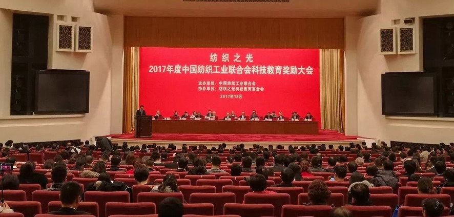 20171218日,“紡織之光”2017年度中國紡織工業聯合會科技教育獎勵大會在人民大會堂隆重召開。中國紡織工業聯合會黨委書記兼秘書長高勇,會長孫瑞哲,副會長李陵申、端小平等行業領導出席了大會。