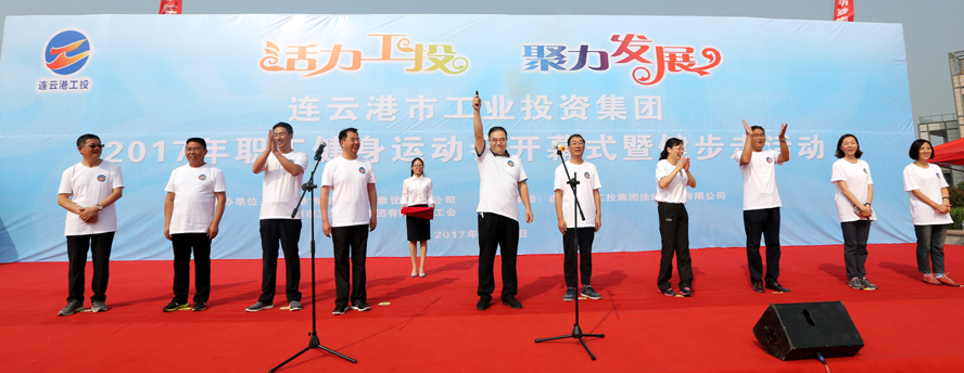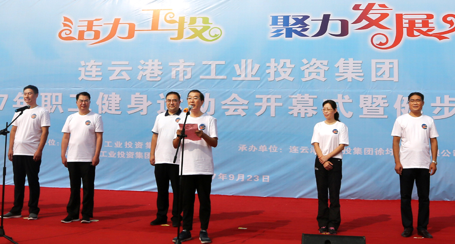 金秋九月,天藍氣清。為豐富職工業余文化生活,展示職工健康文明、積極向上的精神面貌,923日上午,集團公司2017年職工健身運動會開幕式暨健步走活動在徐圩新區云湖廣場隆重舉行。集團公司董事長、黨委書記楊龍宣布運動會開幕,并為健步走活動發令。總經理胡建明致開幕詞,工會主席戴鴻鳴主持開幕式。