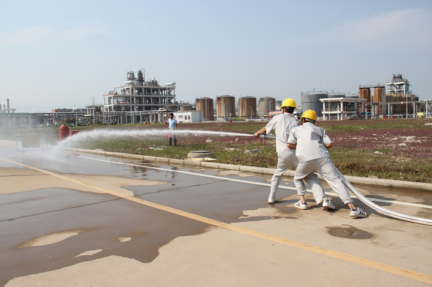 比武前,由消防教官對操作技巧、要領(lǐng)、安全注意事項進行了說明,各參賽隊3人一組依次進行比賽,發(fā)令后,接水袋、連水槍、開消火栓、沖向目標(biāo)、擊中火源點,動作連貫無差錯的情況下比速度,最后黃化制鈣代表隊以15.07秒的優(yōu)異成績獲得一等獎,金橋制鹽代表隊、神特新材料代表隊獲得二等獎,供電公司代表隊、氨綸公司代表隊和臺北投資公司代表隊獲得三等獎。