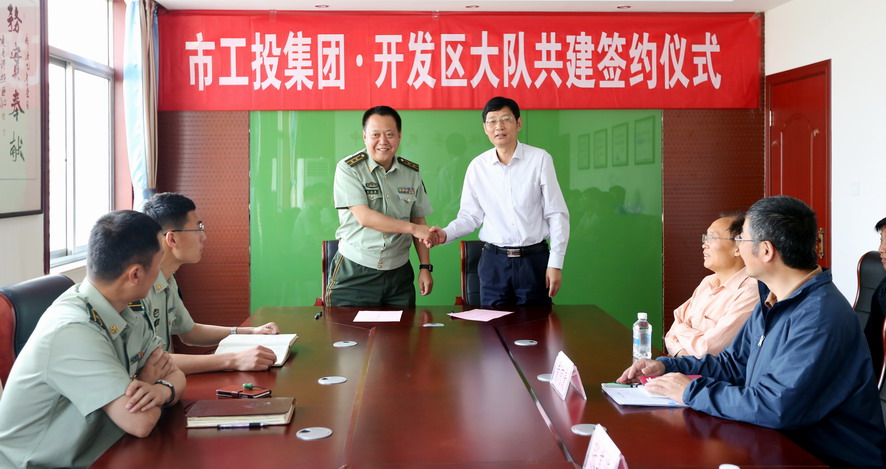 5月25日,集團公司與市開發區消防大隊簽訂“雙聯共創”協議,雙方將圍繞“兩學一做”學習教育、崗位互換交流、消防培訓業務交流等方面開展警企共建互動。集團公司公司副總經理張其海、市開發區消防大隊教導員王正強、大隊長公浩等出席簽約儀式。