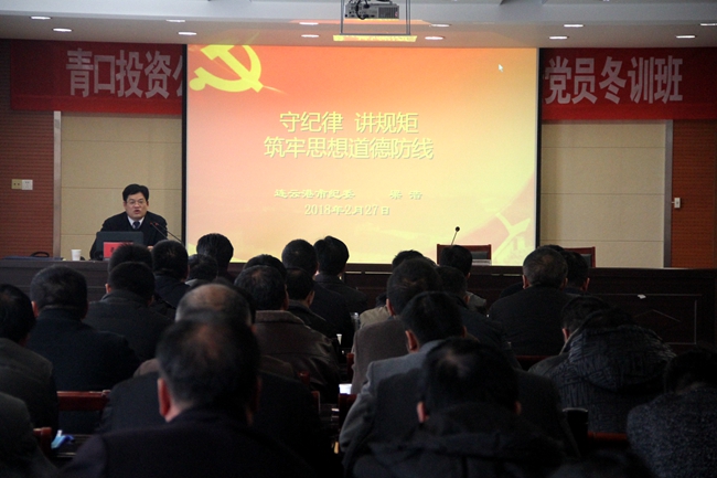 為加強黨員干部廉潔教育,提高拒腐防變意識,2月27日下午,青口公司邀請市紀委監委、第八紀檢監察室主任梁浩作了題為《守紀律講規矩 筑牢思想道德防線》的專題報告,公司領導班子成員和全體在崗黨員參加此次講座。