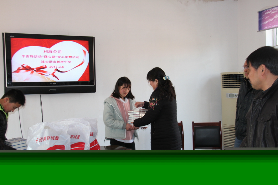 36日下午,利海公司按連云區“學雷鋒志愿服務月”活動內容,主動聯系板橋中學,了解到有部分貧困學生的實際困難后,積極與學校開展圓夢“微心愿”活動,為他們送去棉衣與書籍等學生們心中的“微心愿”。