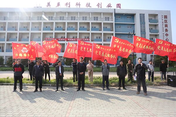 為進一步加強服務型黨組織建設,引導和動員廣大黨員在企業創新創效行動中充分發揮先鋒模范作用,日前,臺北投資公司全體黨員志愿者在美多利科技創業園內開展“踐悟初心,鋒領前行”黨員義務奉獻日活動。在授旗儀式上,全體黨員還重溫了入黨誓詞。