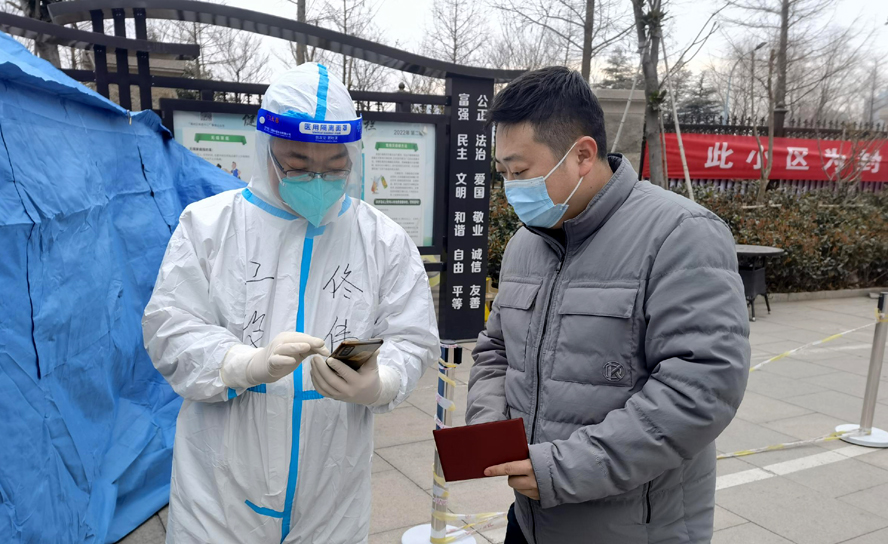 平時她只是居民小區(qū)里普通的一員,過著平凡的生活。但在這場沒有硝煙的抗“疫”之戰(zhàn)中,作為發(fā)展對象,她勇敢的站了出來,成為了疫情中的英勇戰(zhàn)士。她就是商務部員工王曦。在做核酸檢測信息采集時,王曦需要與醫(yī)護人員一樣,穿上厚重的防護服,裝備齊全,完善自身防護,然后對每位待檢人員進行手機掃描身份證登記。這項工作聽起來簡單,可干起來就不是那么容易了,注意力需要高度集中,掃描身份證后要進行信息核對,有缺失的信息需要補錄,戴著手套的手戳起小小的手機屏幕根本就不是那么利索,需要反復多次才能完成采集。為了避免上廁所耽誤工作,她忍住口干不喝水,保持掃碼姿勢基本不變,一天下來脫下防護服,里面的衣服早已被汗水濕透。當家人心疼的問她累不累的時候,她說:“我只是做了力所能及的事情,與其宅在家里,不如參加志愿服務,在這特殊時期盡自己的綿薄之力。”