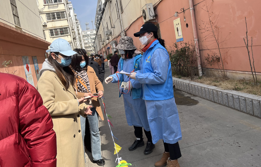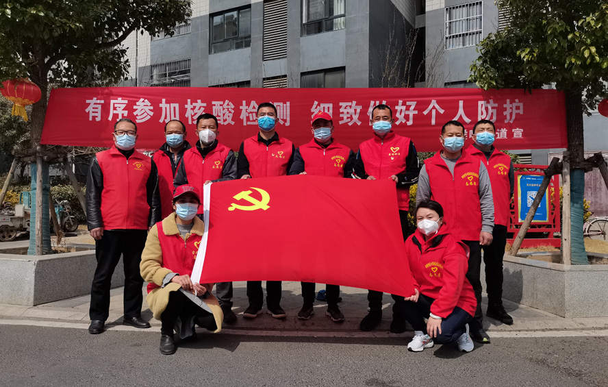 除了在崗員工,還有退休黨員秦英、孫芳等,在疫情發(fā)生前,他們是公司內(nèi)退黨員,在疫情爆發(fā)以后,他們是無(wú)所畏懼的抗疫戰(zhàn)士。隨著連云港開(kāi)始第一輪全員核酸檢測(cè),工作人員和志愿者都嚴(yán)重短缺,每天確診病例激增的數(shù)據(jù)都令人觸目驚心。當(dāng)看到招募志愿者的公告時(shí),秦英熱血沸騰。“黨和人民需要我,我的家鄉(xiāng)需要我!”主動(dòng)聯(lián)系海州區(qū)幸福路街道西大嶺社區(qū),在咨詢志愿者報(bào)名的同時(shí),鄭重地并向社區(qū)遞交了一份疫情防控“請(qǐng)戰(zhàn)書(shū)”。