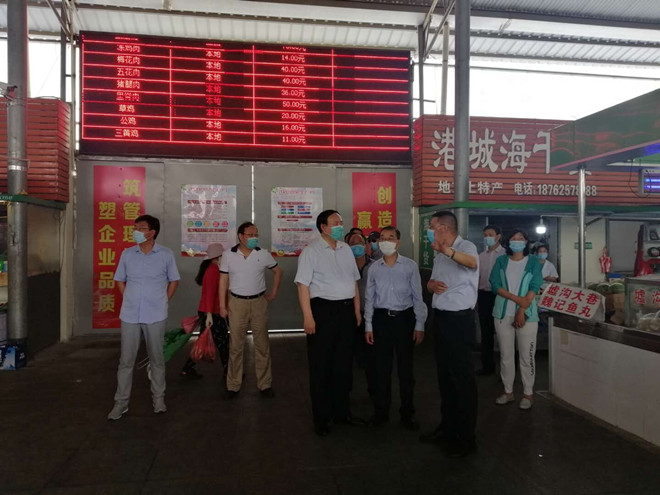 6月26日,連云港市政府副市長徐家保到巨龍農貿市場檢查雙創和防疫工作,集團公司黨委副書記、總經理胡建明,公司總經理孫政權、副總經理伏運余陪同檢查。