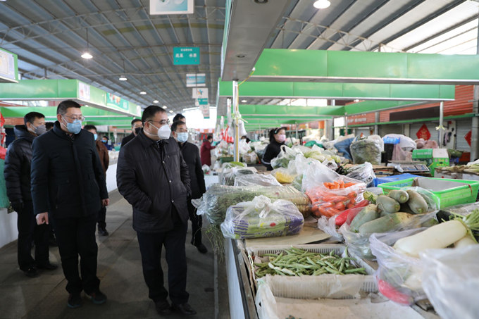 為及時(shí)掌握疫情,全面落實(shí)防控措施,堅(jiān)決打贏疫情防控阻擊戰(zhàn)。1月30日下午,集團(tuán)公司黨委書記、董事長楊龍,黨委副書記、總經(jīng)理胡建明,工會(huì)主席劉承志、總經(jīng)濟(jì)師陳如軍輕車簡從,到巨龍農(nóng)貿(mào)市場(chǎng)防疫第一線實(shí)地督導(dǎo)檢查,公司經(jīng)理孫政權(quán)、黨委副書記王志軍、副經(jīng)理伏運(yùn)余、經(jīng)理助理朱兵陪同視察。