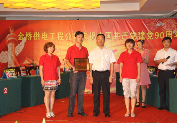 629日,公司舉行紀念建黨90周年知識搶答賽,共有八支代表隊參加。經過角逐,公司機關黨支部代表隊、灌西供電所黨支部代表隊和徐圩供電所黨支部代表隊分獲一、二、三等獎。(司宣)