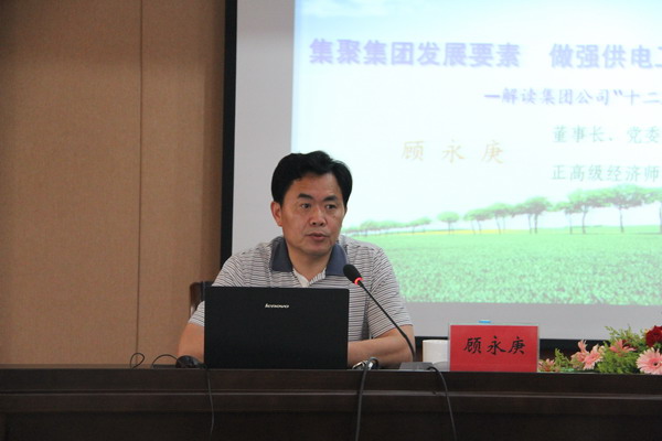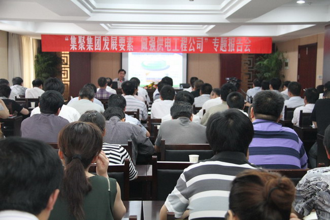 6月20日下午,集團公司董事長、黨委書記顧永庚來到公司作了題為“集聚集團發展要素,做強供電工程公司”的專題報告,報告會由公司總經理、黨委書記范益寶主持。公司領導班子及副科級以上管理人員聆聽了報告。