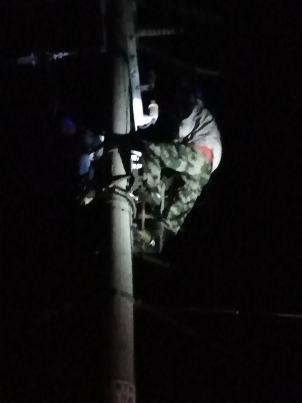 7月15日晚上8點26分,為了保證養殖戶正常用電,值班人員正在黃下線養殖支線搶修斷路器故障時接到黃沙村十八位居民及淡水魚塘用戶報“警”電話說:“一隊變壓器高壓方引線線路冒火,配電箱斷路器跳閘停電”。得到消息后,所值班人員立即通知線路組長余榮欣同志。9點21分恢復養殖支線正常供電后。余榮欣立即組織黨員盧明利、安全員王兜柱三名同志,冒著視線差、天氣熱、蚊蟲多惡列環境,趕赴事故現場查明停電原因。到達現場后,已經聚集數十位居民在盼望著………。黨員盧明利同志在辦理停電、驗電、掛接地等程序后登桿仔細檢查,發現高壓側套管內導線燒焦粘在一起。(該臺變系農網一期工程,變壓器、配電實施配置低,居民用戶、用電電量不斷增加,嚴重超載運行所致)。在其他同志配合下,重新壓接更換導線,經過近3個小時“奮戰”全面恢復附河線正常供電。此時全身都濕透了的他們臉上露出勝利的笑容,因為我們是守衛光明的哨兵。(王學忠)