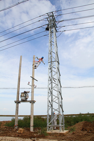 日前,灌西供電所組織職工對二辛線養殖戶更換變壓器,圖為增容現場。(電宣)