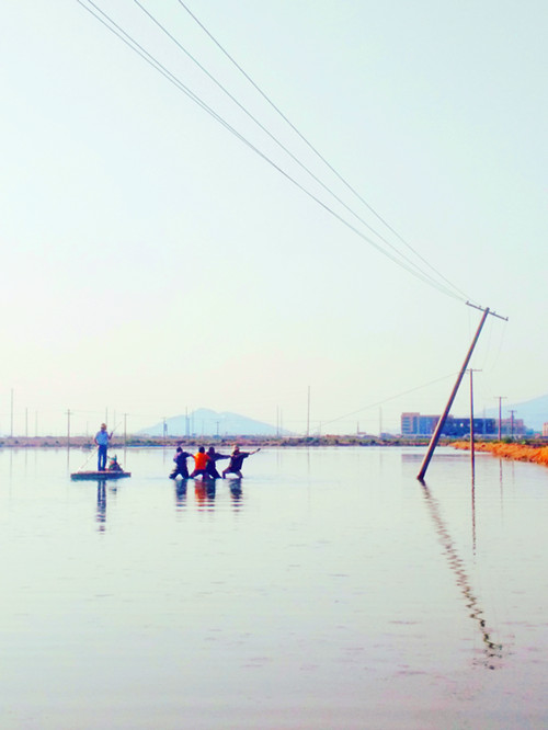 920日,該所組織人員進行搶修。搶修人員經過現場勘查后,發現隱患地點處于池塘中,搶修車輛等大型工器具無法到達,只能靠人工搶修。在與魚塘養殖戶協商后,俞德春、楊祖加、楊新軍等搶修人員在對低壓線路采取停電、驗電、掛接地等安全措施后,利用小木船來回穿梭、傳送材料,再跳入沒腿深的水里,將電桿扶正、加固。此時,水面上的船、水中的人、拖拽的線路成了鏡頭中的新聞亮點。最后在經過半個多小時的特色搶修后,成功恢復供電。(錢明華)