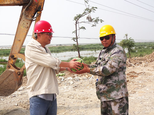 7月29日上午,灌西供電所領導班子深入海濱大道電纜敷設工程施工現場,為職工送去西瓜、純凈水等防暑降溫慰問品。在施工現場,該所領導了解了施工進展情況,并叮囑大家千萬要注意施工安全,避開高溫時段作業,切實預防高溫中暑,確保不發生任何大小安全事故。(王志勇)