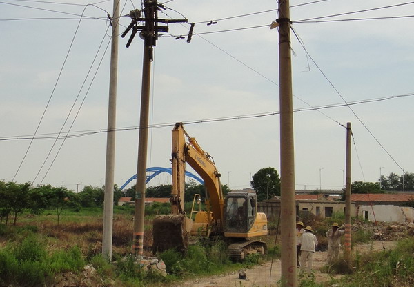 當日上午9時,室外溫度高達35攝氏度,板橋、板橋工業園等片區突發停電。人們被迫從空調房中走出來,匆匆忙忙尋找避暑的地方。臺南供電所負責人接到報告后,迅速啟動應急搶修預案,并立即安排人員分頭查找停電原因。經過認真巡視檢查,終于發現了停電原因:金港灣物流園“板橋線”75#變壓器附近的59#電桿,由于挖掘機施工時操作失誤而倒地,并導致同向4根線桿倒地斷裂,造成轄區內大面積停電。要恢復正常供電,必須重新架設電桿。于是,該所領導立即通知相關工作人員,組織準備相關設備、器材。10時許,副所長朱兵帶領搶修人員和準備齊全的設備器材,趕往現場進行搶修。