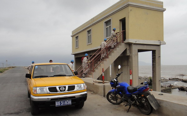 6月26日上午,臺南供電所為檢驗防汛搶險隊伍的應急能力,在徐圩新區劉圩港閘口開展防汛搶險應急演練。