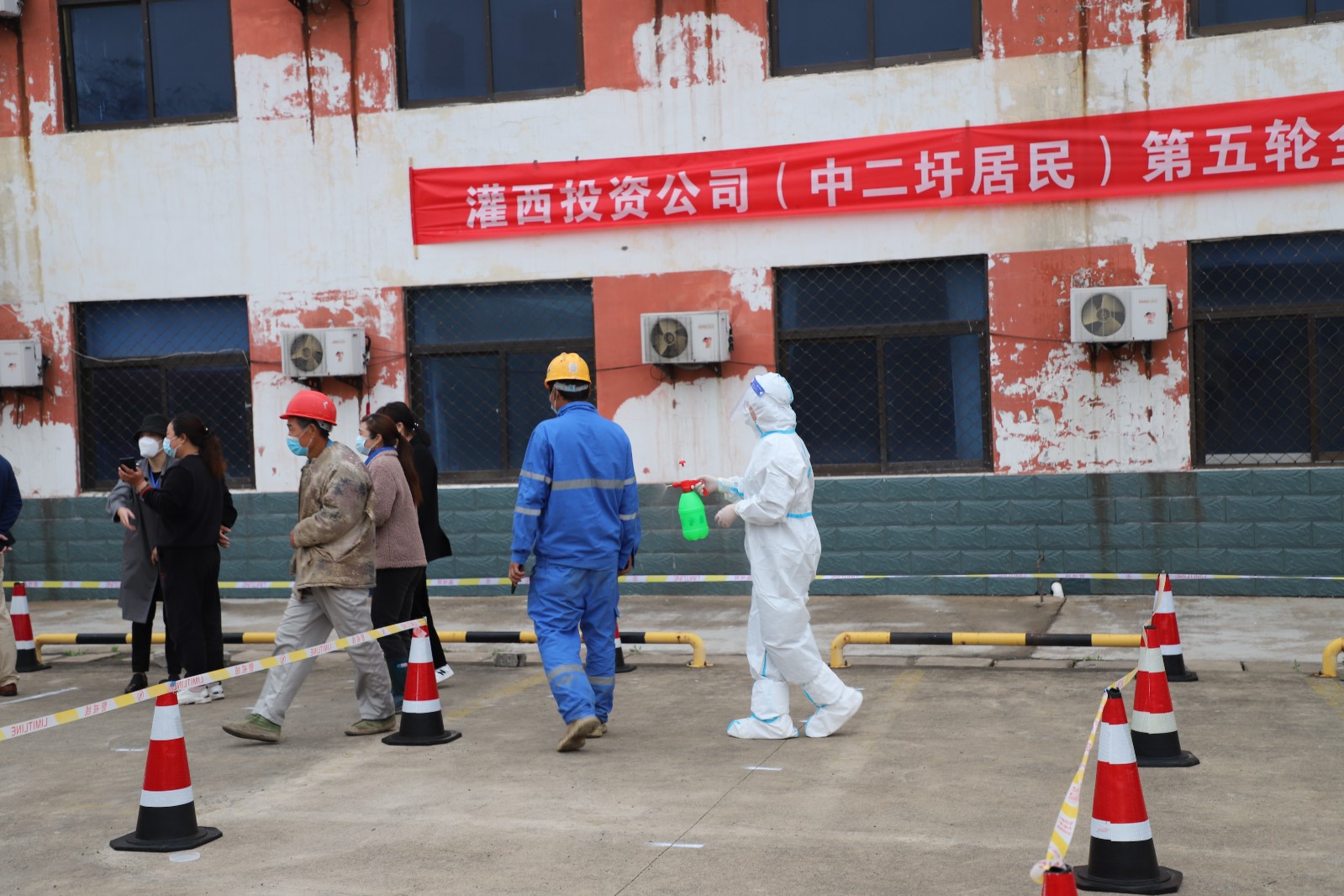 為了配合做好這一輪的全民核酸檢測工作,從核酸檢測前期的場地準備到居民隊伍的秩序維持,從協助醫護人員做好消毒、信息錄入到現場管理,灌西投資公司廣大志愿者奮勇上前,全過程參與其中。由于之前天氣有雨,早在凌晨3點多鐘,公司志愿者們就來到現場部署核酸檢測場地,及時做好設置隔離區,劃出一米線等工作,確保了早上5點半點準時開始檢測。