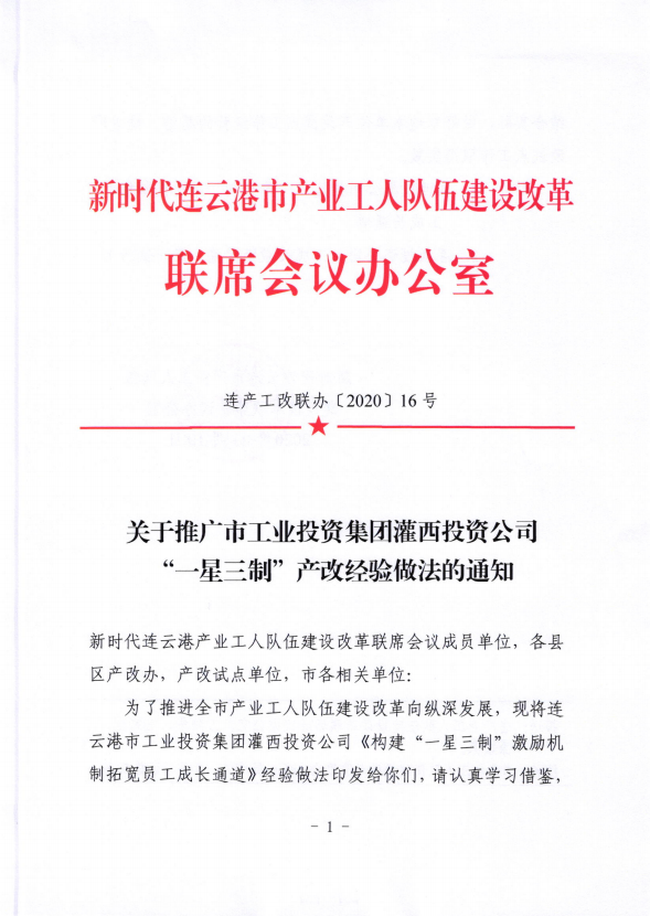 1120日,新時(shí)代連云港市產(chǎn)業(yè)工人隊(duì)伍建設(shè)改革聯(lián)席會(huì)議辦公室在全市推廣工投集團(tuán)灌西投資公司“一星三制”產(chǎn)改經(jīng)驗(yàn)。
