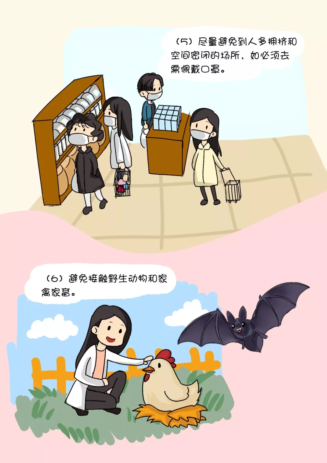 (5)盡量避免到人多擁擠和空間密閉的場所,如必須去需佩戴口罩。