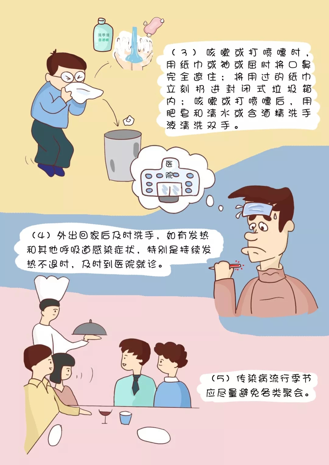 (4)外出回家后及時洗手,如有發熱和其他呼吸道感染癥狀,特別是持續發熱不退時,及時到醫院就診。