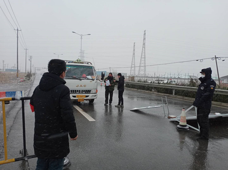 在324省道灌西入口和場(chǎng)內(nèi)各道路口,綜合治理辦公室和新河、埒南制鹽公司疫情防控一線的“戰(zhàn)士們”迎著風(fēng)雪和嚴(yán)寒的猛烈沖擊,堅(jiān)守崗位,認(rèn)真履職,他們?cè)诳谥凳兀瑖?yán)格按照要求對(duì)出入車輛、人員進(jìn)行檢查,認(rèn)真做好相關(guān)登記,以實(shí)際行動(dòng)踐行著諾言,他們守住了防疫一線的門,扎牢了抗擊疫情的網(wǎng),他們是風(fēng)雪中最美的身影!鮮紅的黨旗下,黨徽熠熠生輝,要問今天最美的風(fēng)景是什么,值守卡口的黨員干部用行動(dòng)告訴你,是風(fēng)雪中對(duì)灌西這片凈土最堅(jiān)定的守護(hù)!