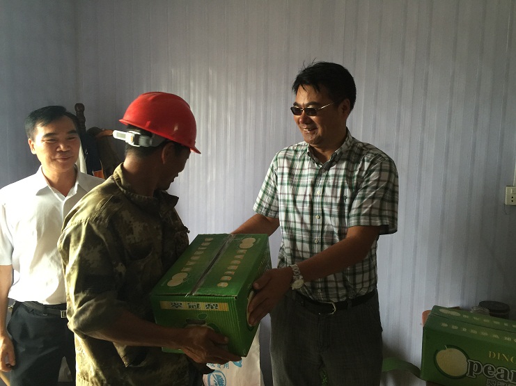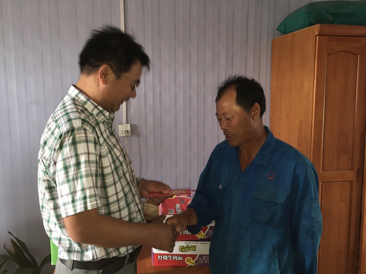 走訪過程中,公司領導深入扒鹽現場,與員工親切交談,詳細了解生產、生活情況,并為他們送上月餅、方便面、雞蛋等價值1萬元的慰問品,并致以節日的問候。