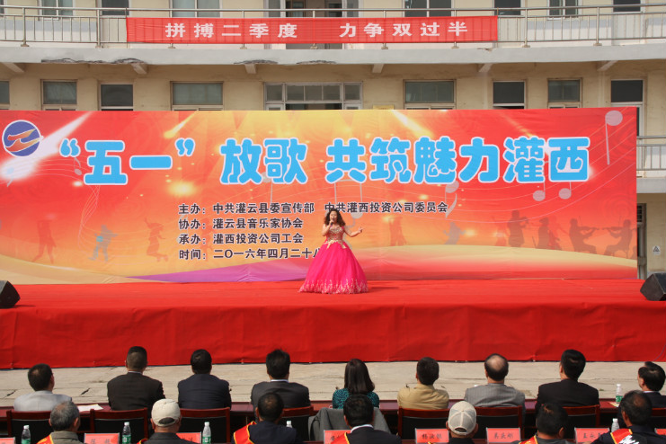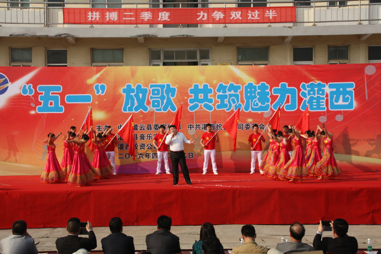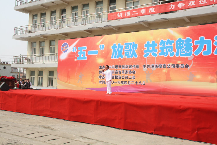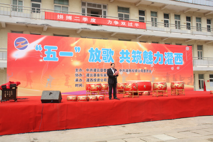 灌云縣委傳部副部長、文聯主席孫成軍、音協主席吳平、集團公司工會副主席李嵐琴,灌西投資公司領導班子成員以及來自公司各條戰線的廣大職工和群眾近千人一同觀看了演出。演出前,投資公司黨委副書記、總經理李國文作了熱情洋溢的致詞。