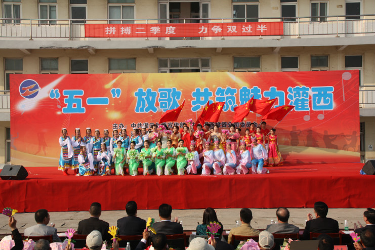 2時30分,演出在開場舞蹈《盛世鴻歌》中拉開序幕。男聲獨唱《咱老百姓》、男女聲五重唱《啊朋友再見》、薩克斯演奏、魔術表演等精彩紛呈的節目給職工群眾送上了一道道豐盛的視聽盛宴;小品《來得及》劇中人收受好處后的思想斗爭表演,很耐人尋味,讓大家在歡樂和感動中接受廉政文化的熏陶;音樂快板《勞模贊歌》、舞蹈《想西藏》、黃梅戲《女駙馬》等職工群眾自己編排的節目生動體現了灌西職工熱愛生活、積極向上的精神面貌。在節目的中間,安排為勞模和先進員工代表獻花向他們致以崇高的敬意,將演出活動推向高潮。最后,演出在歌伴舞《五星紅旗》中圓滿落下帷幕。一首首經典的歌曲、一支支優美的舞蹈為勞動者放歌,為灌西喝彩,表現出了灌西人面對困難不氣餒,攻克難關不言敗的精神面貌。(封楊)
