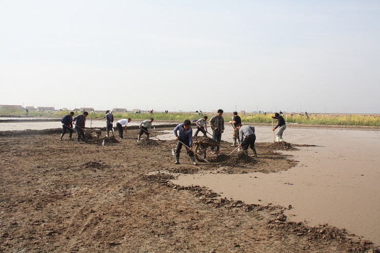 據了解,《淮鹽制作技藝》已于2015年成功申報國家級非物質文化遺產保護項目并審核通過。此次央視攝制組主要圍繞淮鹽發展歷史來我公司拍攝平面灘、對口灘等制鹽工藝及過程,為制作淮鹽文化宣傳片收集影像資料。埒南制鹽分公司黨支部在接到通知后,高度重視此項工作,迅速組織黨員職工及有經驗的班組長投入到灘地改造工作中來,為確保此次拍攝工作順利進行奠定了扎實的基礎。活動現場,大家按照事先劃分好的區域分工協作,互相配合,有鏟泥的,有利用獨輪車推泥的,不一會功夫就完成了四條池埝的制作。據“淮鹽文化傳承人”韓井軍介紹,下一步在平面灘制作完成后,再對格塊進行晾曬、“三嗆四壓”等工序后才能投入使用。(封楊)