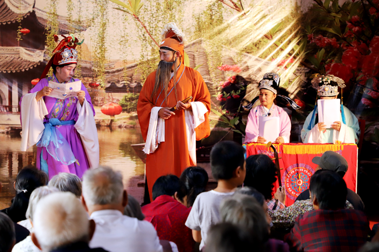 隨著鑼聲響起,演員出場,淮海戲《《梁山泊與祝英臺》》拉開了全場序幕。演員們在臺上盡情地展現著自己的風采,觀眾在臺下也毫不吝嗇自己的掌聲,連綿不斷的掌聲、叫好聲將活動推向一個又一個高潮。