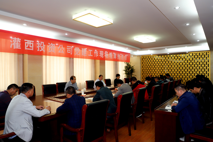 10月16日,灌西投資公司召開黨建工作現(xiàn)場(chǎng)觀摩推進(jìn)會(huì)。投資公司黨委書記、董事長(zhǎng)、總經(jīng)理李國(guó)文,紀(jì)委書記、工會(huì)主席王宏以及18個(gè)黨(總)支部的黨務(wù)工作者參加了黨建工作現(xiàn)場(chǎng)觀摩推進(jìn)會(huì)。