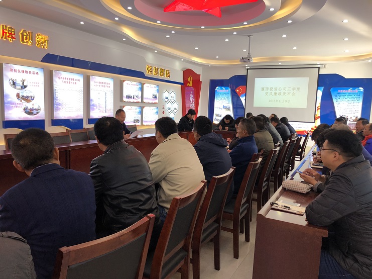 為進一步加強公司黨風廉政建設,推進企務公開制度的落實,強化職工參與企業管理與監督的力度。近日,灌西投資公司召開三季度黨風廉政建設發布會,由老機關片區、日曬制鹽兩大片區基層派駐監察室主任分進行發布,各片區所有管理人員以及部分黨員班組長參加發布會。