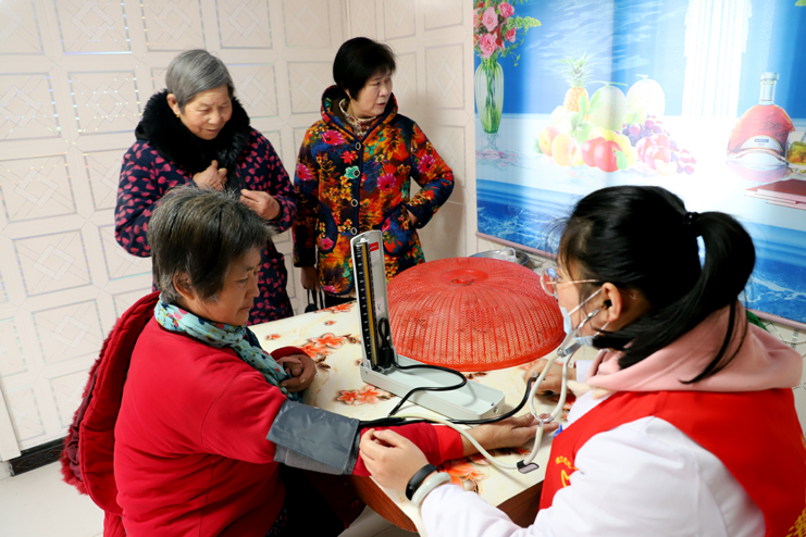 志愿者服務隊上午共走訪了22戶居民家庭,為58位居民進行了身體檢查,并發放和講解高血壓病癥知識和用藥常識。志愿者們耐心細致地為居民進行身體檢查,特別是走訪空巢老人家庭,與老人交談,拉家常,給老人以關愛。