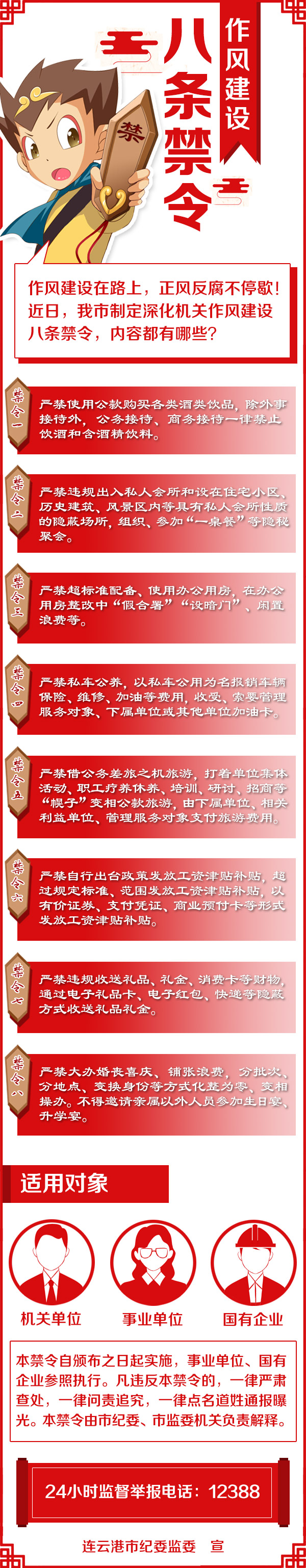 本禁令自頒布之日起實(shí)施,事業(yè)單位、國有企業(yè)參照?qǐng)?zhí)行。凡違反本禁令的,一律嚴(yán)肅查處,一律問責(zé)追究,一律點(diǎn)名道姓通報(bào)曝光。本禁令由市紀(jì)委、市監(jiān)委機(jī)關(guān)負(fù)責(zé)解釋。24小時(shí)監(jiān)督舉報(bào)電話:12388。