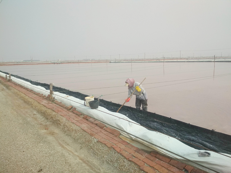 每一個(gè)女孩都喜歡美麗的衣服,都喜歡把自己裝扮得漂亮迷人。可是工作的特殊性不允許鹽灘工“貌美如花”。周娟,37歲,新河制鹽分公司5班一名普通的女工,她關(guān)注班組集體事務(wù),能夠團(tuán)結(jié)、關(guān)心班組女工,并積極帶領(lǐng)女職工昂揚(yáng)向上,奮發(fā)有為,為單位鹽業(yè)生產(chǎn)多作貢獻(xiàn)。周娟特別注重對(duì)新上崗的員工培訓(xùn)教育工作,她總是不厭其煩講解原鹽操作流程及工作中的注意事項(xiàng)和安全隱患,毫不保留將自己多年的經(jīng)驗(yàn)傳授給大家。炎熱的夏天,當(dāng)大家坐在辦公室,吹著空調(diào)、喝著冰水時(shí),她和她的同事依舊在鹽灘忙碌著,嬌嫩的皮膚被曬得黝黑。盡管如此,她依然每天駕駛著活茬機(jī),一遍又一遍地游走在鹽田,將汗水撒在工投。