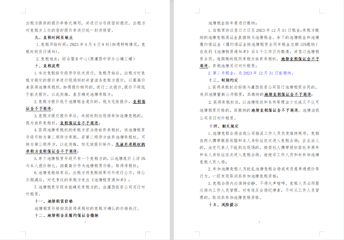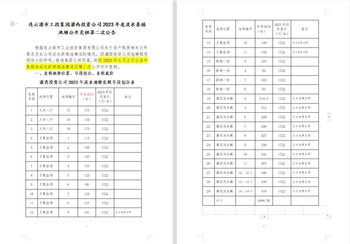連云港市工投集團灌西投資公司2023年度淡水養殖池塘公開競租第二次公告