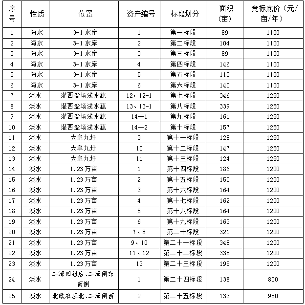 二、池塘租賃年限:原1.23萬畝淡水區域池塘租賃期限2年變更為1年。