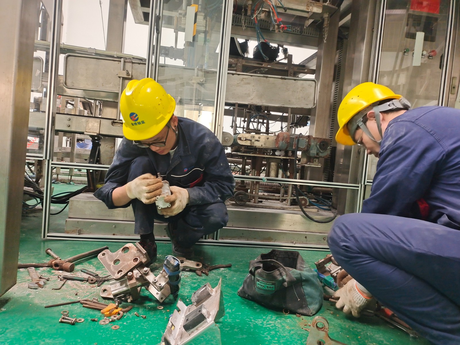 包裝鹽車間停產(chǎn)期間,為避免車間設(shè)備在后期生產(chǎn)時(shí)出現(xiàn)問題,王以知帶隊(duì)對(duì)設(shè)備進(jìn)行維修保養(yǎng)。經(jīng)過分工,陳韓和王睿對(duì)裝袋機(jī)夾袋機(jī)構(gòu)更換磨損軸承;趙新超對(duì)裝箱機(jī)伸縮頭導(dǎo)軌進(jìn)行調(diào)整維護(hù);王東海和秦榆旺對(duì)爬坡皮帶機(jī)檔條脫落的進(jìn)行加固;最后,對(duì)電纜溝蓋板除銹上漆,使車間環(huán)境更加美觀整潔(李竹垚)