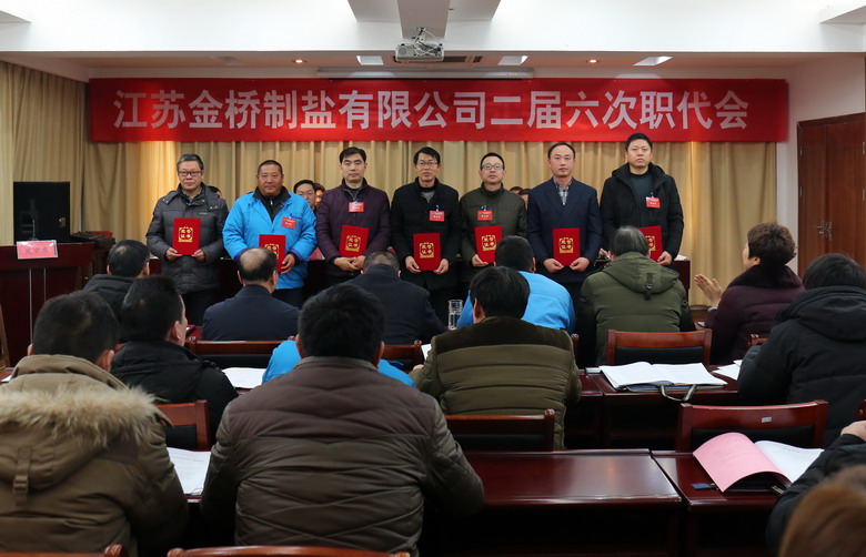 2月15日上午,我公司二屆六次職代會在公司三樓會議室隆重召開,來自各車間、單位、部門的46名職工代表參加了會議,共同商討金橋制鹽發展大計。公司領導班子成員及職工代表出席會議,部分先進代表列席會議。公司董事長、黨委書記、總經理朱桂玉作工作報告。大會由公司黨委副書記、紀委書記、工會主席李昊睿主持。