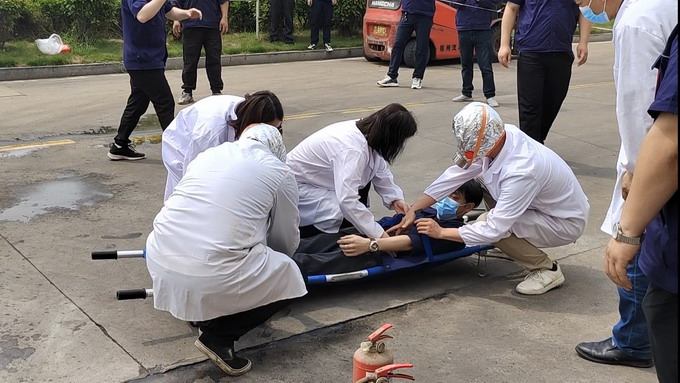 演練分為火災應急疏散、火災應急救援、有限空間應急救援三個部分展開。在火災應急疏散演練中,設定三樓會議室為模擬火災現場,人員2分鐘內從指定逃生路線規范、有序、迅速撤離到了安全地帶;火災事故應急救援和有限空間應急救援分別模擬紙箱庫著火及地龍有害氣體窒息,分信息報告、啟動應急響應、現場警戒、醫療救護、事故搶險等各處置環節,整個演練緊張有序,過程流暢,達到檢驗應急預案的可行性和提高應急救援人員的應急處置能力的效果,為完善我公司應急預案提供實踐依據。