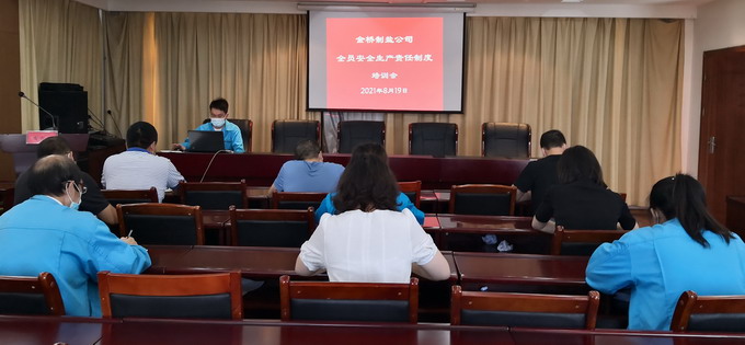 經過修改的《中華人民共和國安全生產法》將于202191日起正式實施。根據安全生產法中建立健全全員安全生產責任制的相關要求,7月份以來,金橋制鹽公司全力做好安全生產法的學習宣貫及全員安全生產責任制的修訂完善工作,確保法規宣貫全體參與、配套制度全部完善、安全責任全員覆蓋。