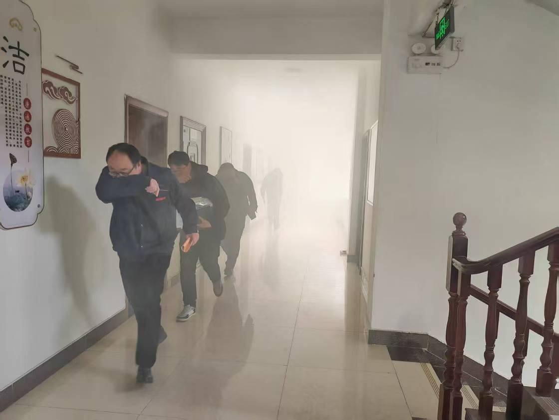 疏散演習開始后,全體人員迅速做出反應,在現場引導員的指揮下,按照預定的疏散路線,捂住口鼻,低姿彎腰,有序地向指定的安全區域撤離。