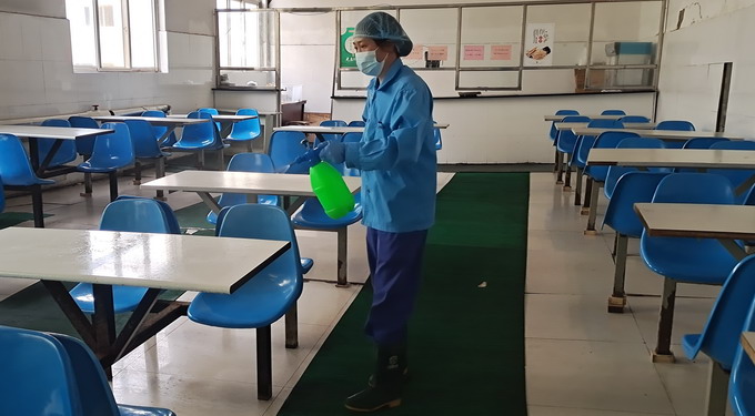 落實防疫措施圖為餐廳消毒