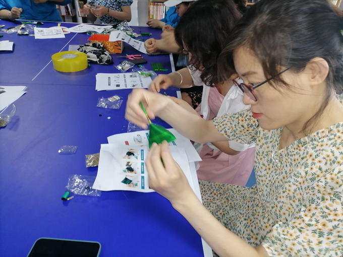 制作香囊時,大家認真研究、相互探討,經過半個多小時細心的縫制,一個個神形兼備的“粽子”香囊呈現在眼前。