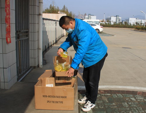 疫情發生以來,供應部強化責任意識,踐行初心使命,爭分奪秒做好疫情防控物資籌措,配合打好疫情防控阻擊戰。大年初三開始,采購員伏勝杰就一直堅守在工作崗位上,多方聯系采購各種防疫物資。當時,連云港市區各大藥店的口罩已被搶購一空,伏勝杰多方聯系,采購了800只口罩;但考慮到公司可能很快復工,口罩還是有很大缺口,伏勝杰聯系了許多供應商,都被告知口罩已售完,而且再訂貨也要等很長時間;他通過網絡多方尋求幫助,終于聯系到5000只口罩,但由于物流難以發運,必須自己去提貨,他自己開車來回近2小時,將口罩購回,用他自己的話說:“口罩買到了,心里的石頭總算放下了。”