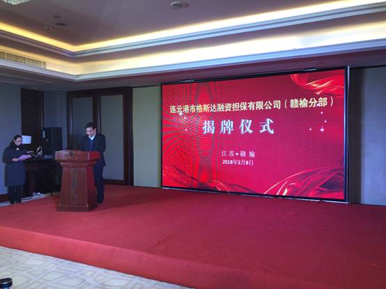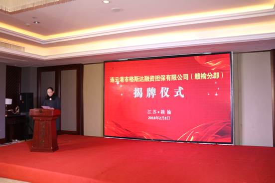在市經信委、贛榆區區委、贛榆區經信局等部門的通力支持下,2018年2月8日上午,市格斯達擔保公司贛榆分部揭牌儀式在贛榆區隆重舉行。隨著市格斯達擔保公司贛榆分部、市工投集團產業投資有限公司和市應急資金管理平臺的相繼掛牌,勢必將對贛榆區中小企業“融資難、融資貴”問題直到積極的推進作用。